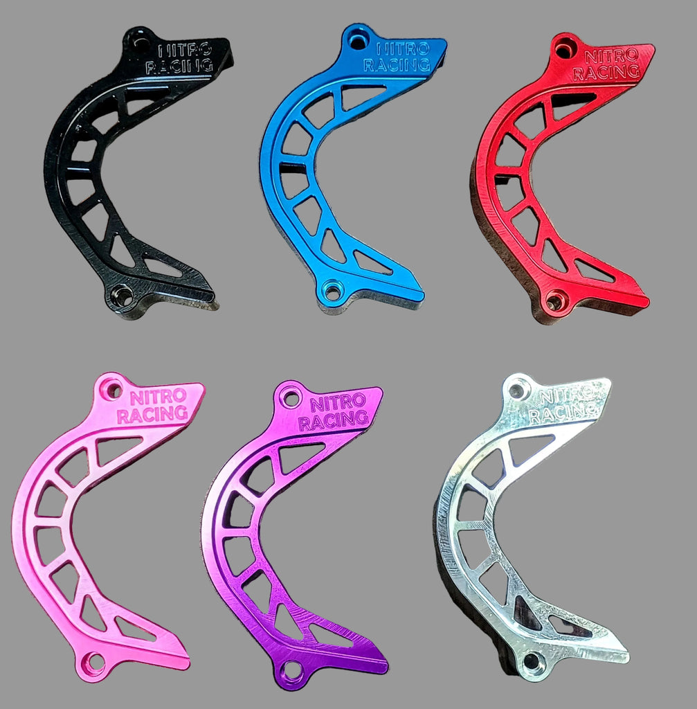 Upgrade the looks and protection of your bike with our Billet Chain Guard! This Chain Guard replaces the stock washer plastic cover that can crack and break. This also adds a bit of style with your choice of 5 colors while still protecting your chain and sprocket from debris, as well as your boot from contact with the chain or sprocket.